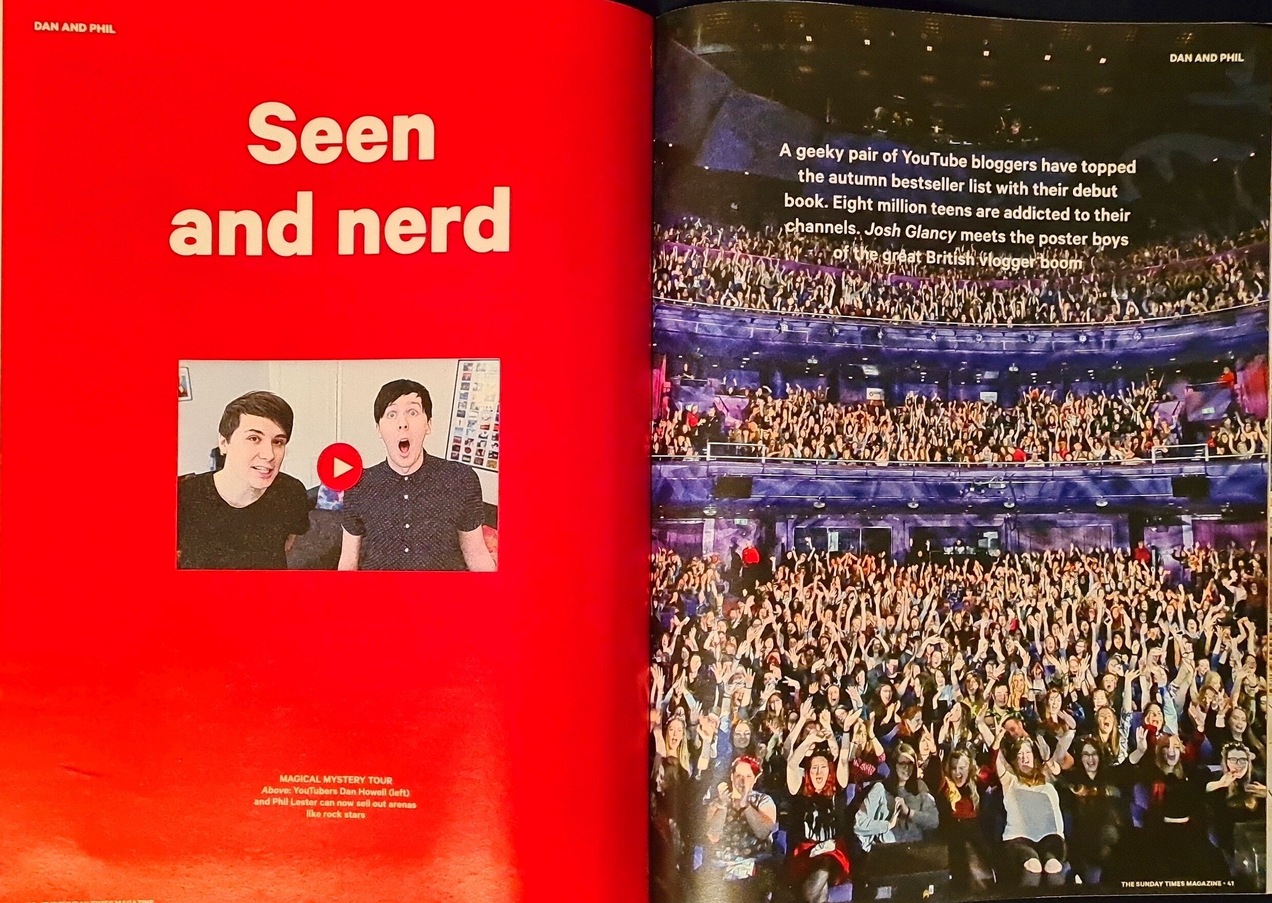 Seen and nerd – A pair of YouTubers have topped the autumn bestsellers’ list and are now selling out arenas. Who are Dan and Phil- and what’s their secret? JOSH GLANCY
