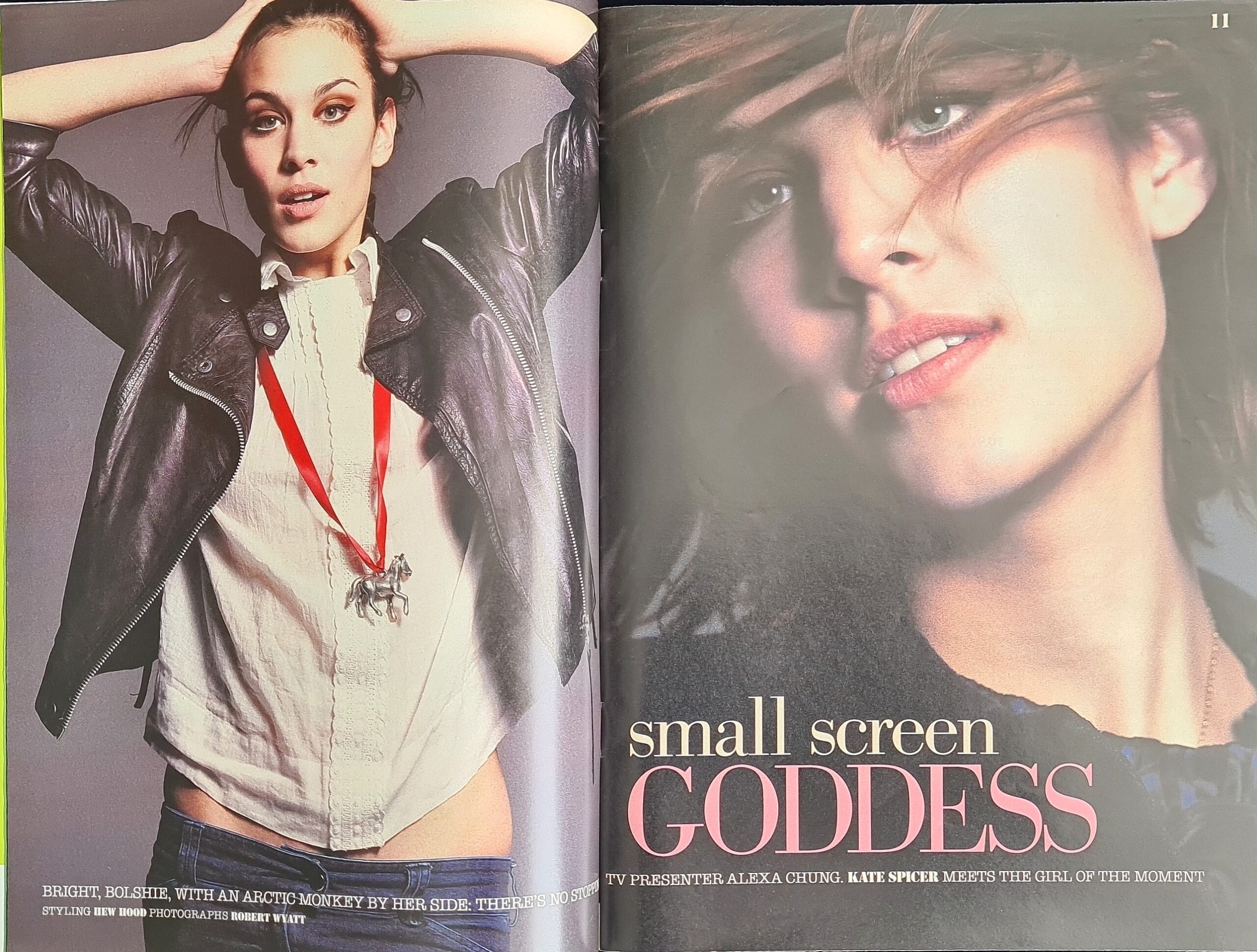 ALEXA CHUNG – Understated glamour? Check. Rock-star boyfriend? Check Punklicious wardrobe and sassy self-confidence? Check, check. check. Kate Spicer meets the sloe eyed TV beauty who’s the girl every girl will want to be in 2008