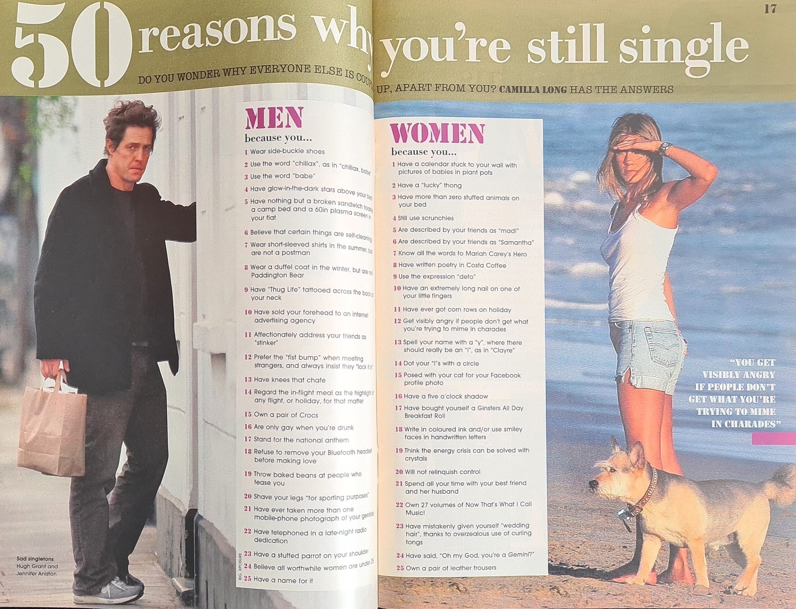 FIFTY REASONS WHY YOU’RE STILL SINGLE – Spent the New Year on your own under the mistletoe – again? Well, there’s probably a reason why you’re still alone, but luckily for you, we’ve got all the answers. Camilla Long unravels the mystery of singlehood