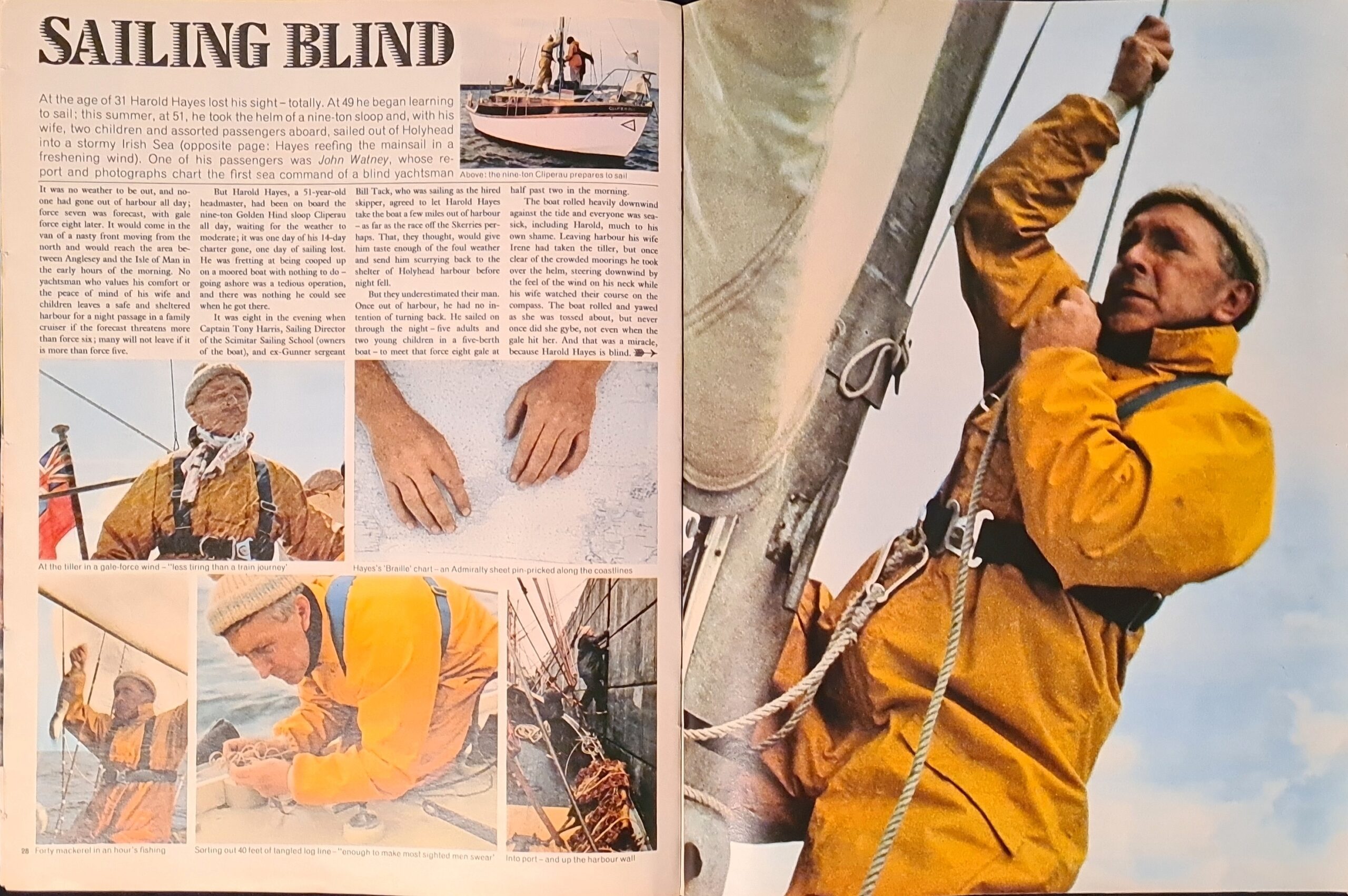 Sailing Blind: Steering into a force 8 gale with a totally blind yachtsman; report and photographs by John Watney.