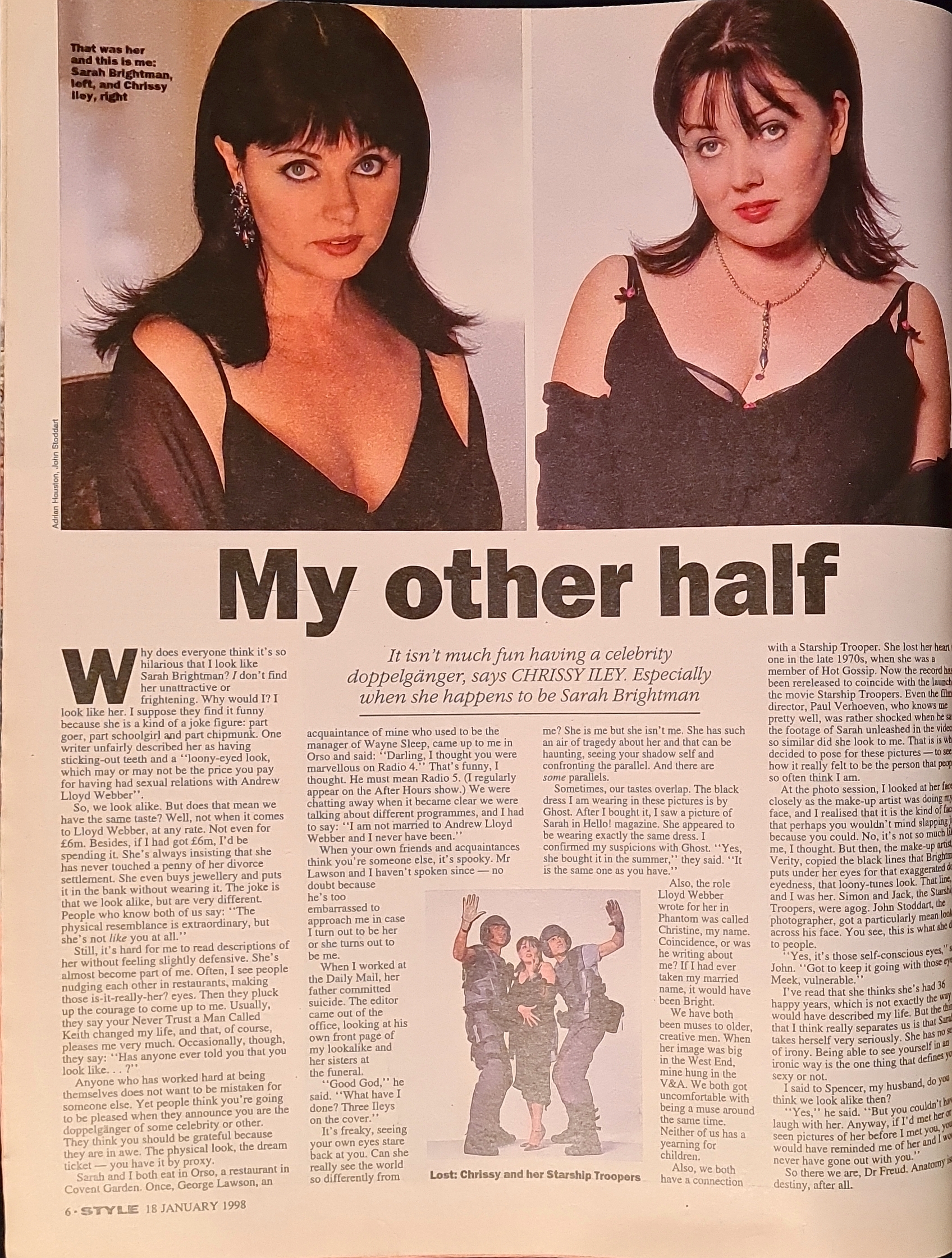 Double vision – Chrissy Iley on the pros and cons of looking spookily like Sarah Brightman
